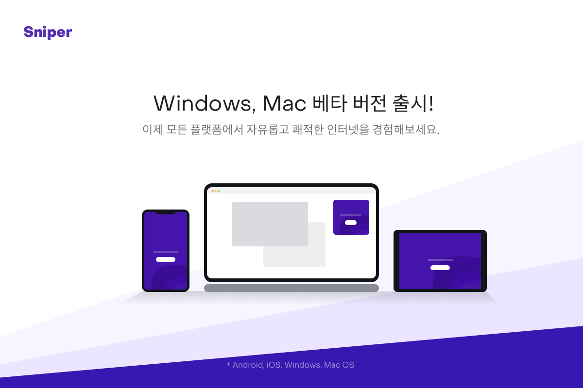 Sniper는 언제, 어떤 브라우저 혹은 환경에서든지 자유롭고 쾌적한 인터넷 경험을 하실 수 있도록 최선을 다하고 있습니다.